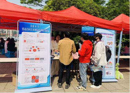 活动现场,人头攒动,热闹非凡。律师向前来应聘的学生宣传了《中华人民共和国宪法》、《中华人民共和国民法典》、《中华人民共和国劳动法》、《中华人民共和国合同法》等相关法律法规知识,引导毕业生提高学法、守法、用法、护法的意识和行动自觉。同时就劳动合同签订、劳资纠纷处理和应聘者关心的问题给予解答。工作人员现场派发了《劳动保障法律法规宣传册》,向广大毕业生宣传劳动保障等方面的知识。