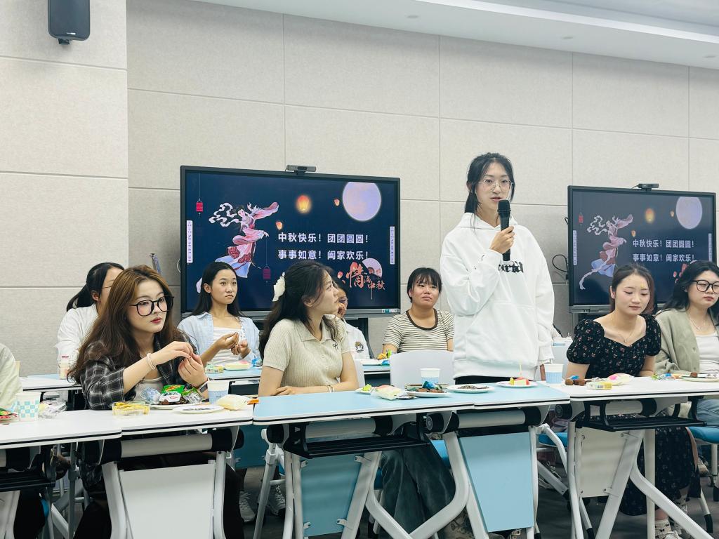 9月14日,在惟真楼人文学院1402智慧教室,学校妇联携手学生处(学生工作部、人民武装部)和人文学院举办新生中秋节座谈会活动。活动中,师生分享各地中秋习俗、交流军训心得、现场才艺展示以及畅谈理想与生活,让新生们在节日的氛围中感受到家的温暖,弘扬中华优秀传统文化内涵。