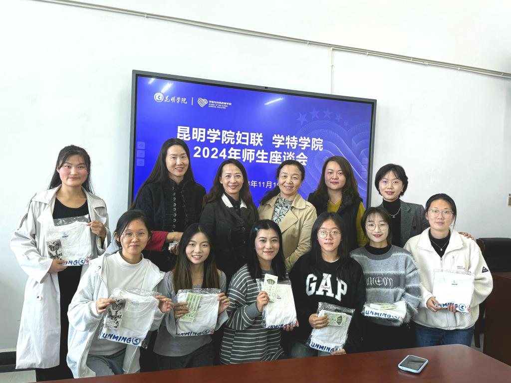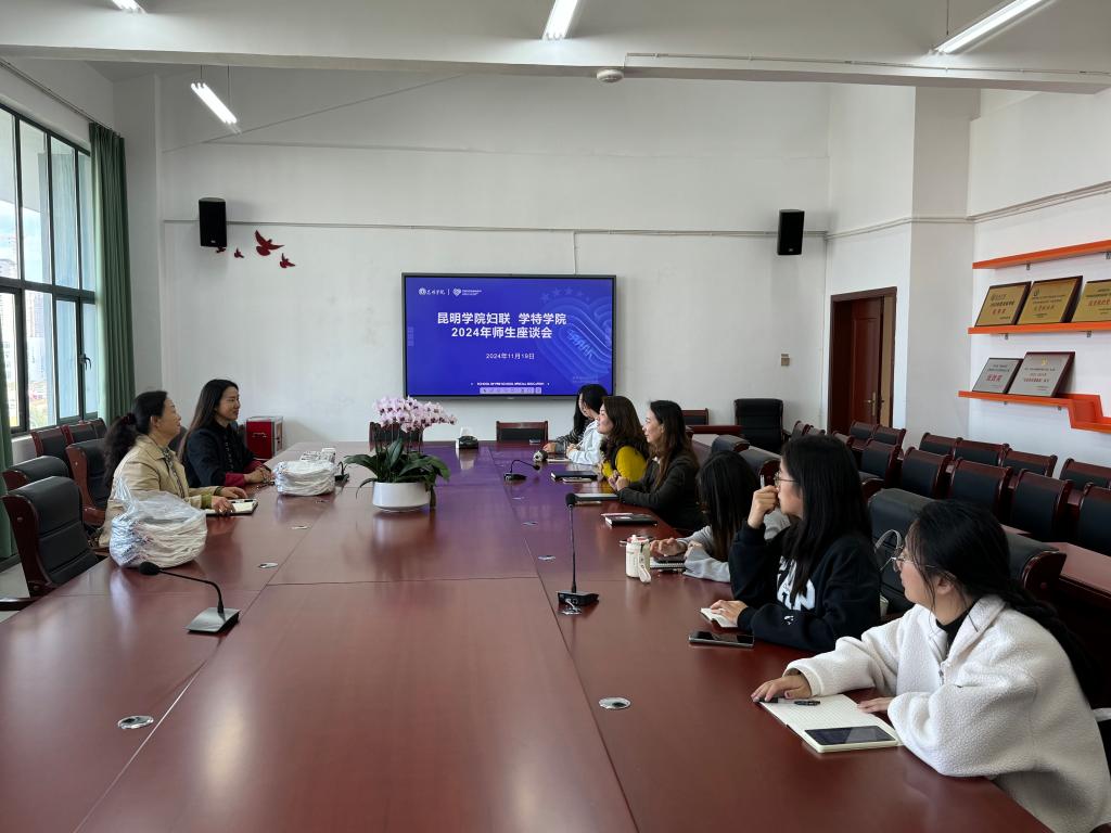 11月19日,学校妇联常务副主席冯娟与妇联执委、学生处副处长刘艳萍一行来到学前与特殊教育学院开展师生座谈会。此次座谈会的召开,旨在表彰在近期代表云知社区参加昆明市经开区阿拉街道啦啦操比赛中取得优异成绩的同学们以及慰问困难女大学生,并对学院师生开展调研。