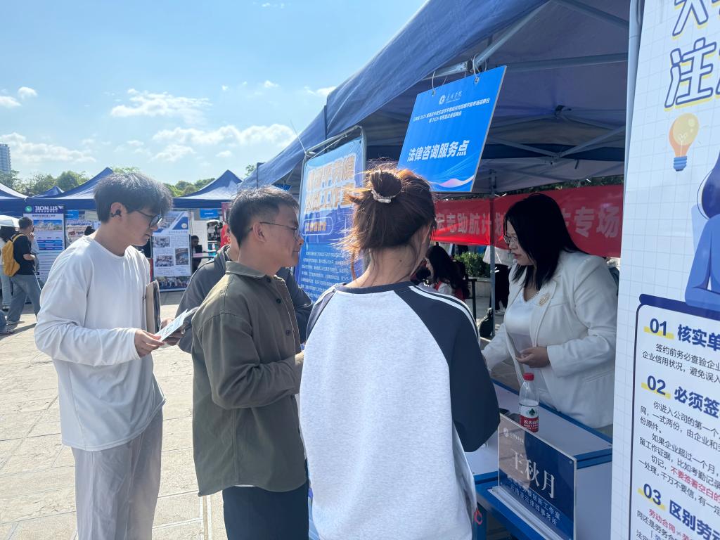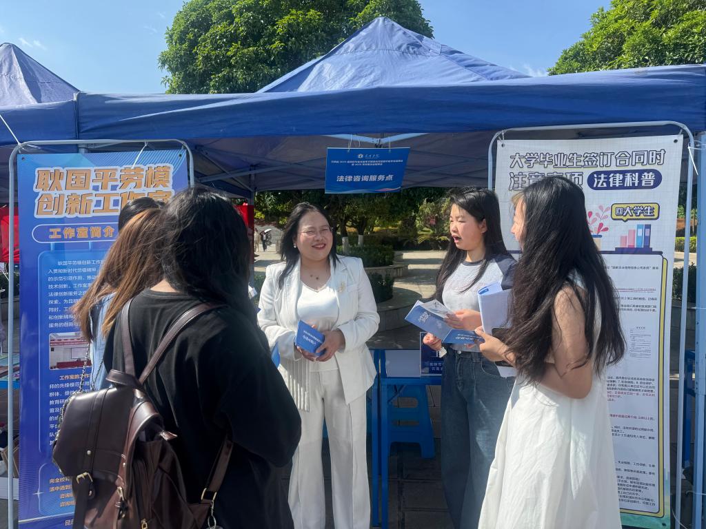 4月18日校妇联与校工会携手昆明市劳模创新工作室专业律师,走进“云南省2025届高校毕业生昆明经济开发区专场招聘会”现场,开展义务法律咨询活动,为同学们提供就业法律法规问题答疑服务。