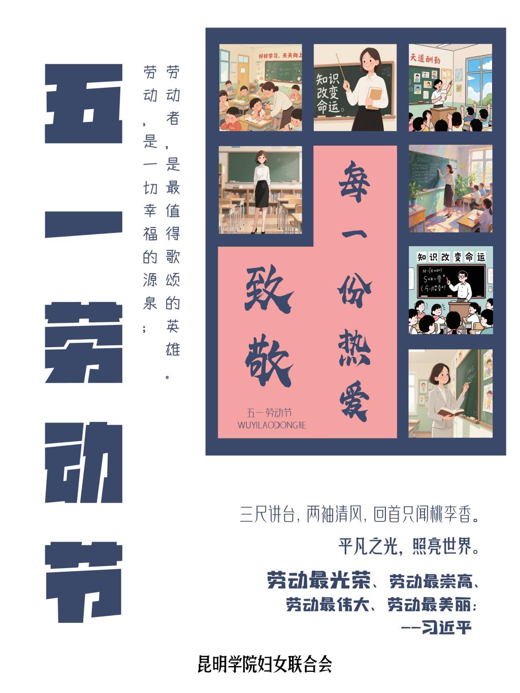 2025年“五一”国际劳动节来临之际,昆明学院妇女联合会谨向辛勤耕耘、敬业奉献在各个岗位上的全校教职工致以亲切的慰问和节日的祝贺!