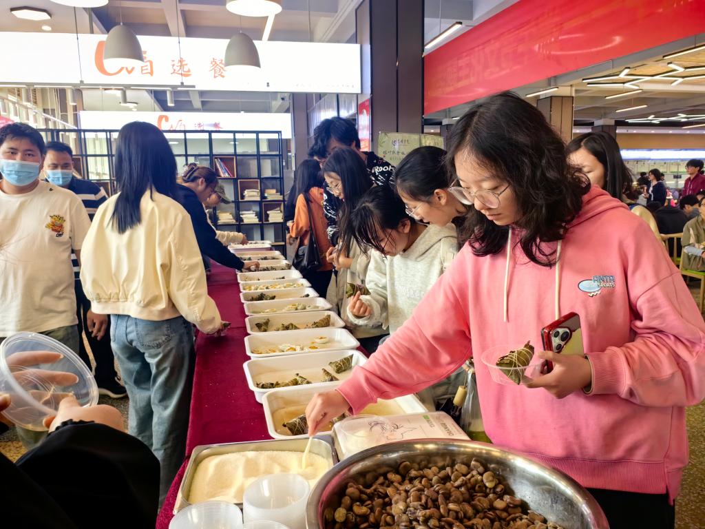 “科学护肤,爱心义诊进校园”健康讲座邀请临床医学专家为同学们讲解皮肤护理知识并进行了现场义诊。资深中医医师受邀为辅导员们举办了一场“传播中医养生知识,营造健康生活方式”的健康讲座并现场进行义诊,帮助老师们了解中医养生的精髓,学会如何在忙碌的工作与生活中保持身心健康。“粽情飞镖·安康端午”飞镖体验活动将飞镖竞技与传统习俗相结合,弘扬中华文化,增强了师生的团队合作精神。"粽叶飘香·暖心端午"端午节云南民俗体验活动在南北苑食堂开展。在文化体验区,师生们品尝了粽子、芽豆、咸鸭蛋、煮大蒜等传统节日美食,并通过图文展板深入了解了民俗文化。在包粽子体验区,4位民俗文化传承人现场指导,师生们学习并掌握了包粽子的技巧和方法,亲手制作出一串串形态各异的粽子,体验了传统手工艺的乐趣。