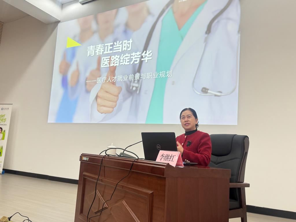 医学生职业发展规划讲座专场由学校党委副书记、校妇联主席李莉主持。医院院长李继红结合临床实践经验与行业发展趋势,从医疗人才就业前景、核心素养培养、实践能力提升、职业生涯规划等方面展开分享;医院专家团队与医学院的同学们展开互动答疑,为医学院学子清晰勾勒职业成长路径,引导他们树立医务人员的职业信念,掌握自主学习与规划能力,为未来医学道路夯实基础。